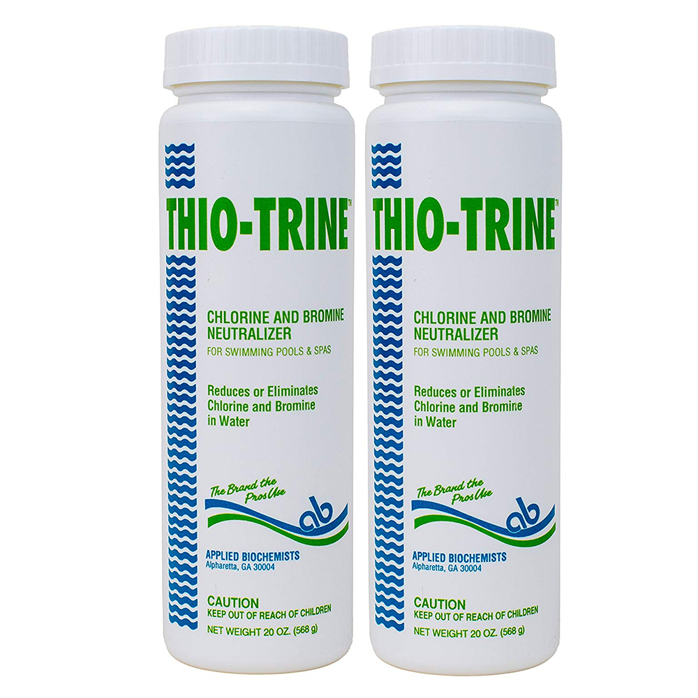 Applied biochemists thio trine reduces or eliminates excessive chlorine or bromine levels. This product contains special 100% sodium thiosulfate crystals neutralize residual chlorine or bromine in pool and/or spa water. This product works quickly & effectively so you can prevent pool downtime due to excessive chlorine or bromine levels. In addition to working in chlorine or bromine systems, this product also works with pools sanitized with biguanide. Reduce sanitizer to safer, more comfortable levels with thio trine.