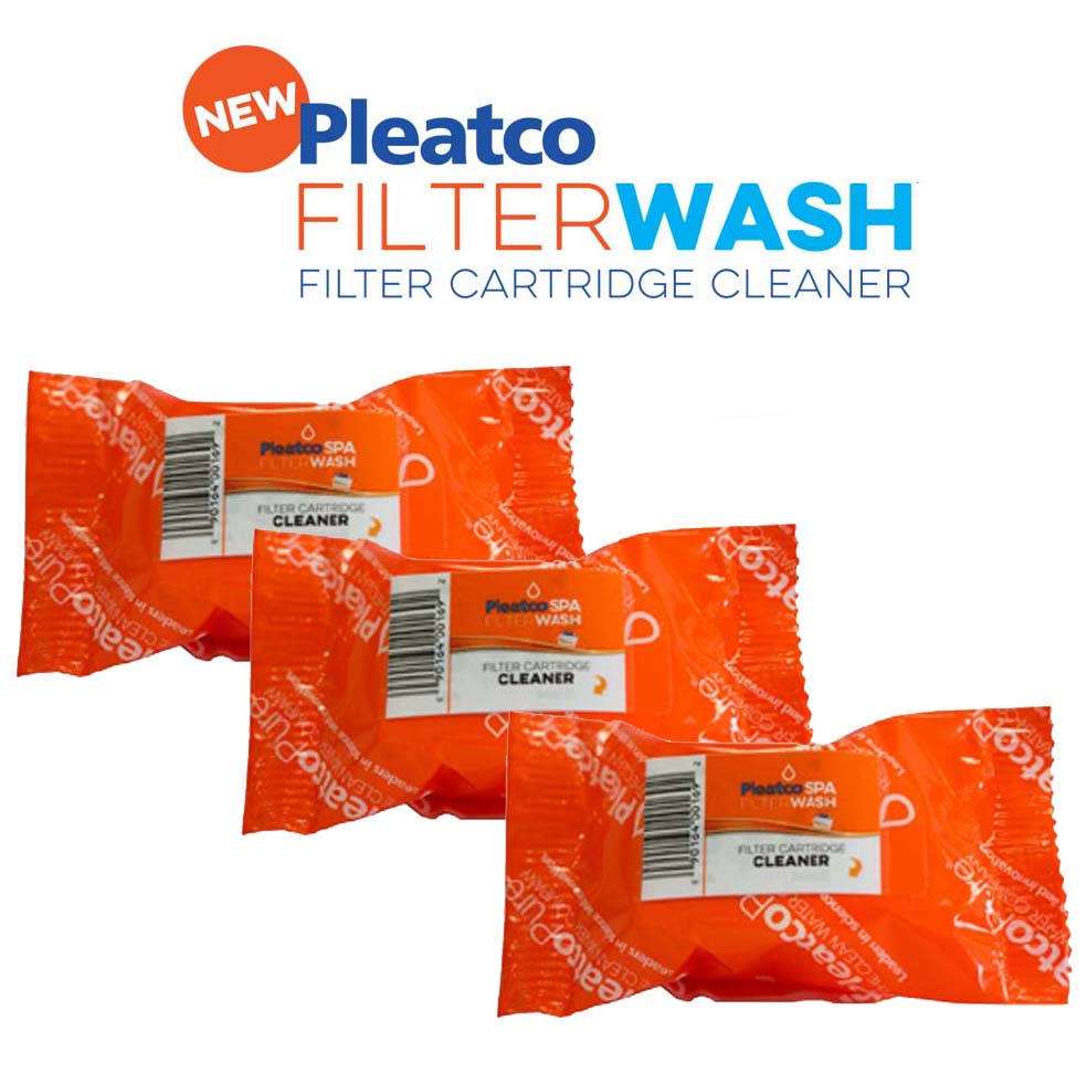 Pleatco Filter Wash is a simple to use cleaning tablet specially formulated to penetrate deeply into any reusable cartridge filter and remove the accumulated materials such as suntan lotion or oil, body oil, grease, dirt, soap scum, and other organics. This thorough cleaning allows cartridges to return to a high level of original performance without harming the filter. Fast acting Fizz tablet means no measuring and no messy chemicals. Just rinse your cartridge, add tablet to water in a bucket, soak entire cartridge (turning upside down to do both sides if needed) for 25 minutes and rinse off. 1 Tablet can clean up to 2 cartridges in one use. Clean as needed or once a month for best cartridge performance.