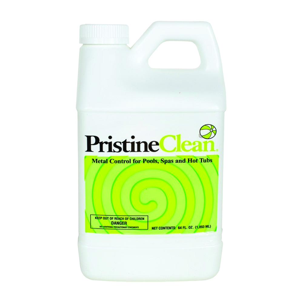 Pristine Blue Pristine Clean prevents metal staining in pools and hot tubs. Pristine Clean prevents the metals that enter your pool or spa through hoses, jewelry and metal equipment from attaching to the walls and leaving unsightly stains.