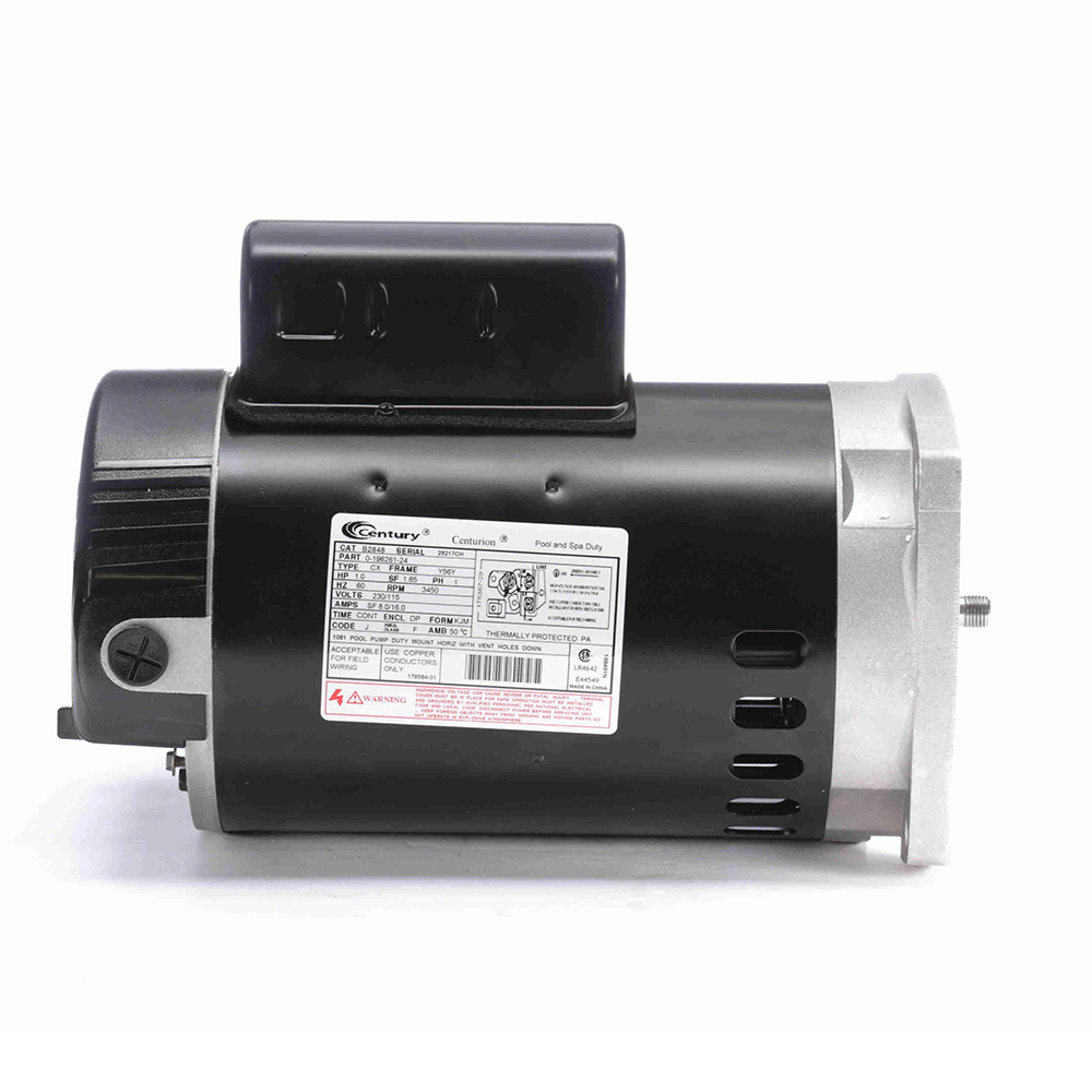 The Century Pool and Spa Pump Motor B2848 is a single-phase motor with a permanent split capacitor for enhanced running efficiency. Equipped with an auto overload protector and ball bearings, the Century Pool and Spa Pump Motor provides long-lasting operation. The Century A.O. Smith Pump Motor has a threaded shaft that allows for convenient and direct mounting.