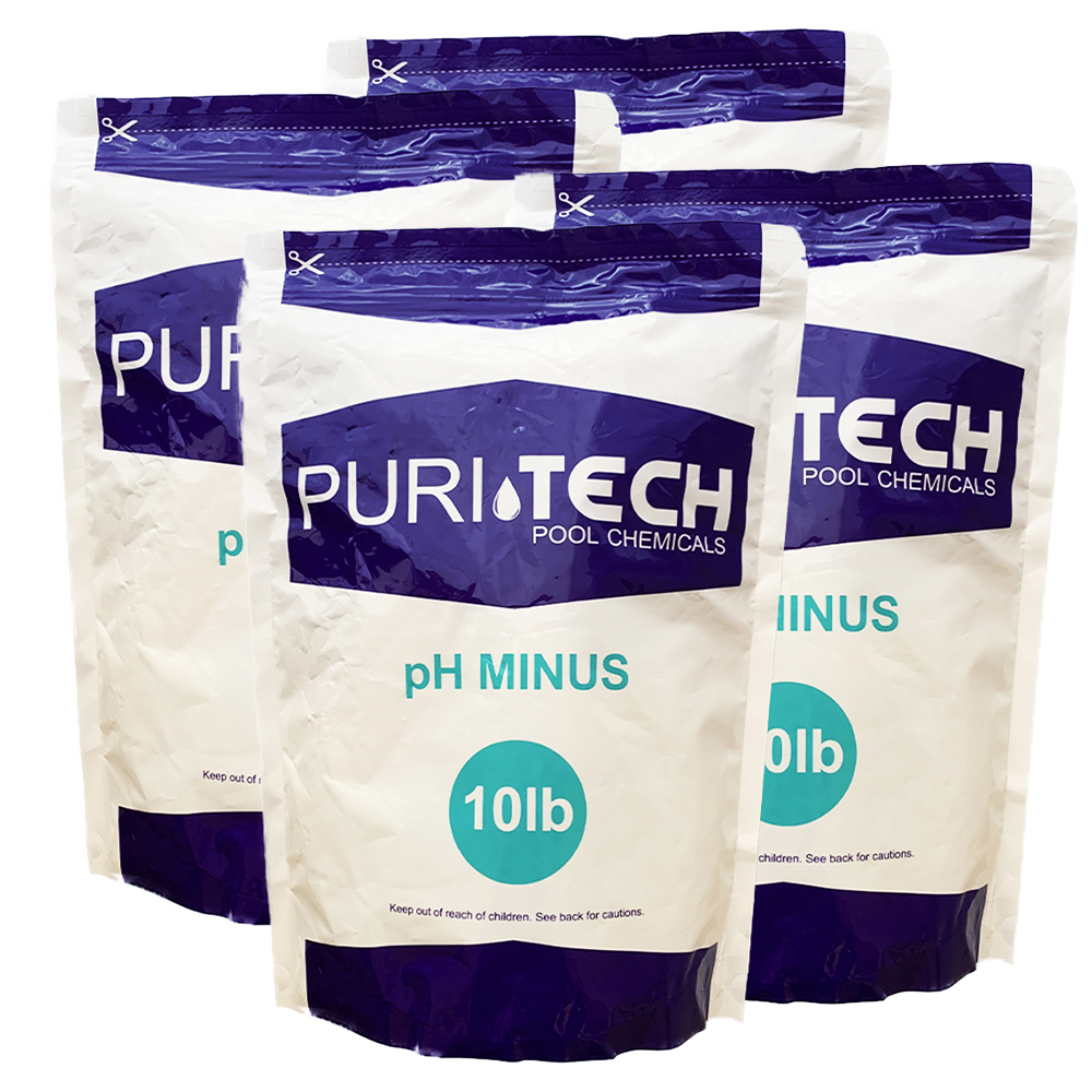 ACTIVE INGREDIENT:Sodium Bisulfate - 100%PRODUCT DESCRIPTION:pH Minus lowers pH level and the total alkalinity. The ideal pH range is 7.4 - 7.6. A pH in this range helps your sanitizer work effectively, and reduces corrosion, eye irritations, and skin dryness.DIRECTIONS FOR USE:1. Determine the amount needed using the chart below.2. Fill a gallon plastic bucket with water.3. Add the proper amount of pH minus and mix with a wooden spoon or plastic utensil until fully dissolved.4. Pour mixture into the entire pool. Make sure circulation system is running. CAUTION:1. DO NOT pour mixture into skimmer, or near pool lights, metal ladders, or other metal fixtures.2. DO NOT add water to the product, but add product to water.3. DO NOT add more than 32 ounces of product per 10,000 gallons at one time.4. After 4 hours, water should be retested and additional product can be added.HOW TO LOWER TOTAL ALKALINITY:Always adjust total alkalinity first, keeping between ideal range of 80 - 150 ppm.If total alkalinity is high: Add 2 lbs for every 10,000 gallons of pool water to lower 10 ppm.Keep circulation pump running and add product at deepest part of pool. Wait 4 hours before adding more product. FIRST AID:IF IN EYES–Flush eyes with water for 15 minutes, while lifting eyelids. Call a physician if irritation persists.IF ON SKIN OR CLOTHING–Brush off excess and rinse skin with water.IF INHALED–Remove yourself to fresh airIF SWALLOWED–If large amounts are swallowed, drink a large amount of water. Do not induce vomiting. Call a physician.STORAGE and DISPOSAL:Keep product dry in the original, tightly closed container when not in use. Store in a cool, dry, well ventilated area. Keep out of reach of children. Rinse empty container thoroughly with water then place in trash receptacle.