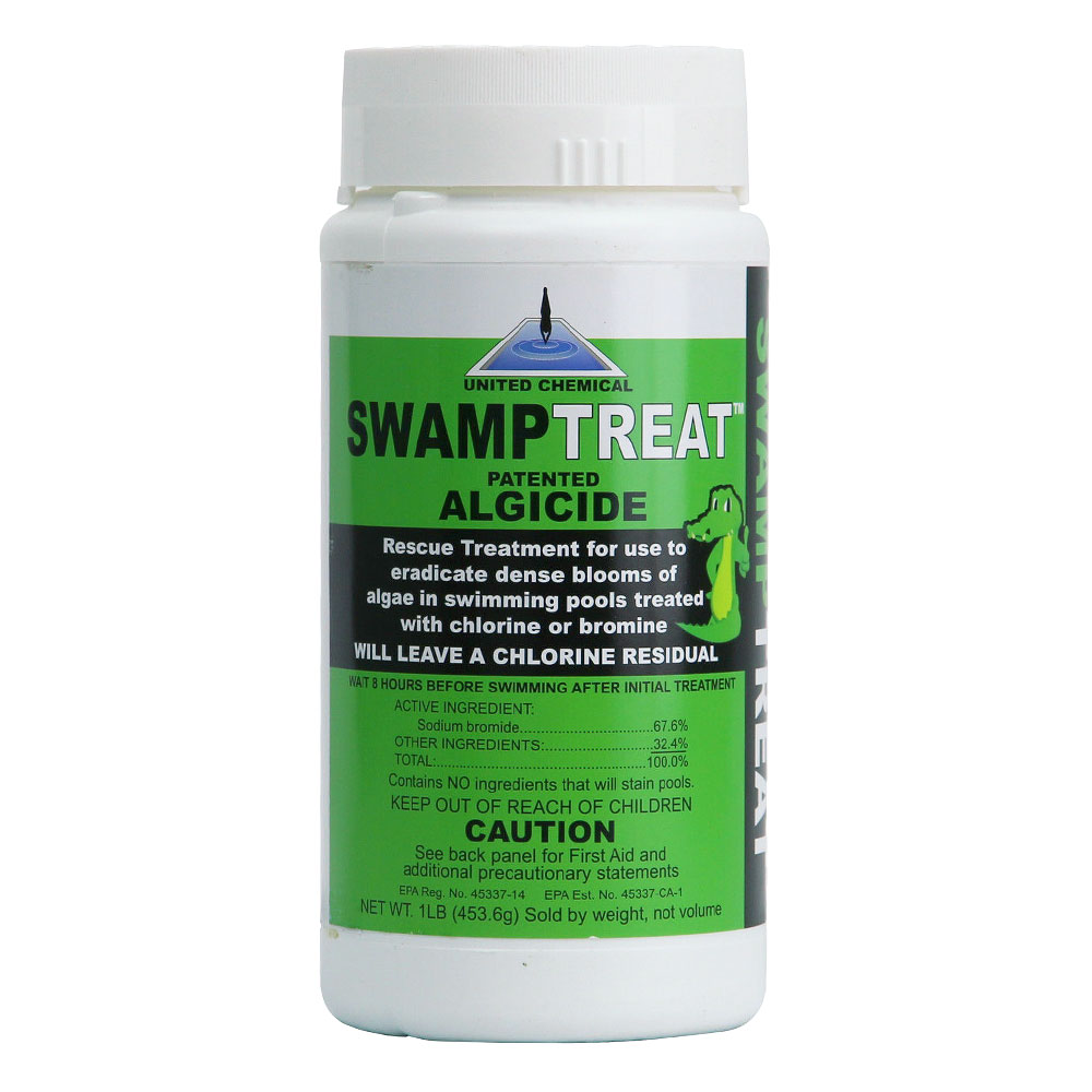 Swamp Treat Pool Algae Eliminator is the most powerful pool algaecide from United Chemical. This algae remover can turn a green pool clear in 24 hours or less.