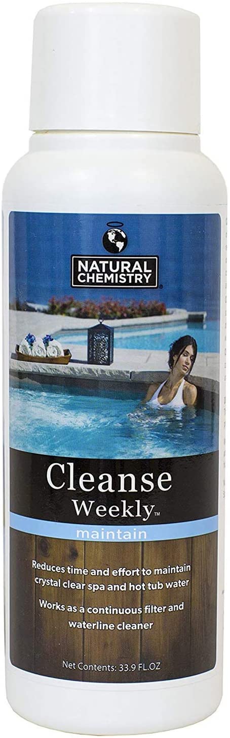 Natural Chemistry Cleanse Weekly provides spa owners with a clarifier that utilizes powerful natural enzymes to break down and remove contaminates such as: body oil, sweat, shampoo, soap, lotions, scented additives, and other non-living organic compounds to keep spas clean and healthy. Cleanse Weekly eliminates strong chemical odors, skin and eye irritation, dirty water line formation, and reduces overall spa maintenance, providing bathers with enjoyment for years to come.