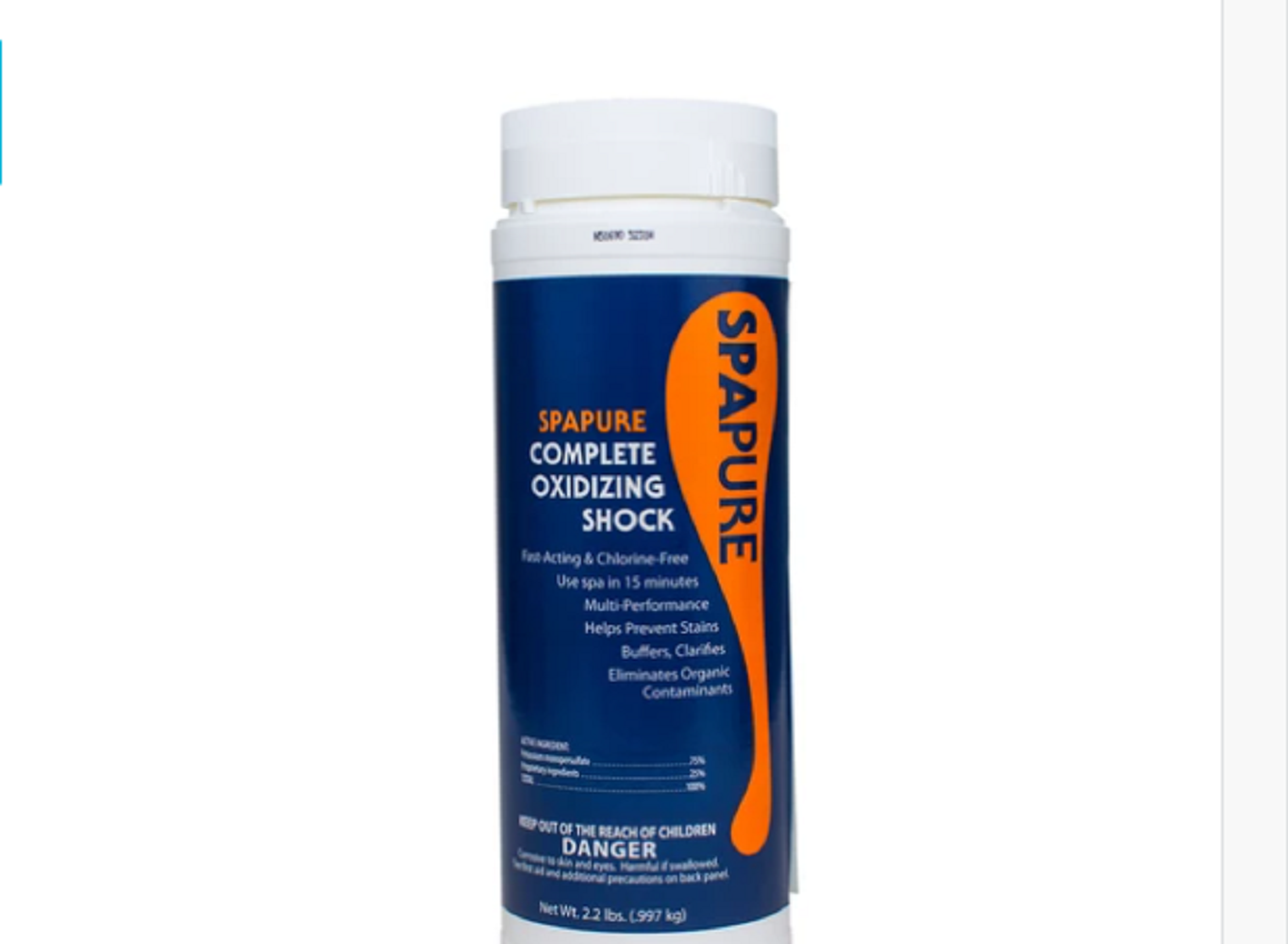 The SpaPure Complete Oxidizing Shock is a fast acting chlorine-free shock that promotes maximum sanitizer efficiency.