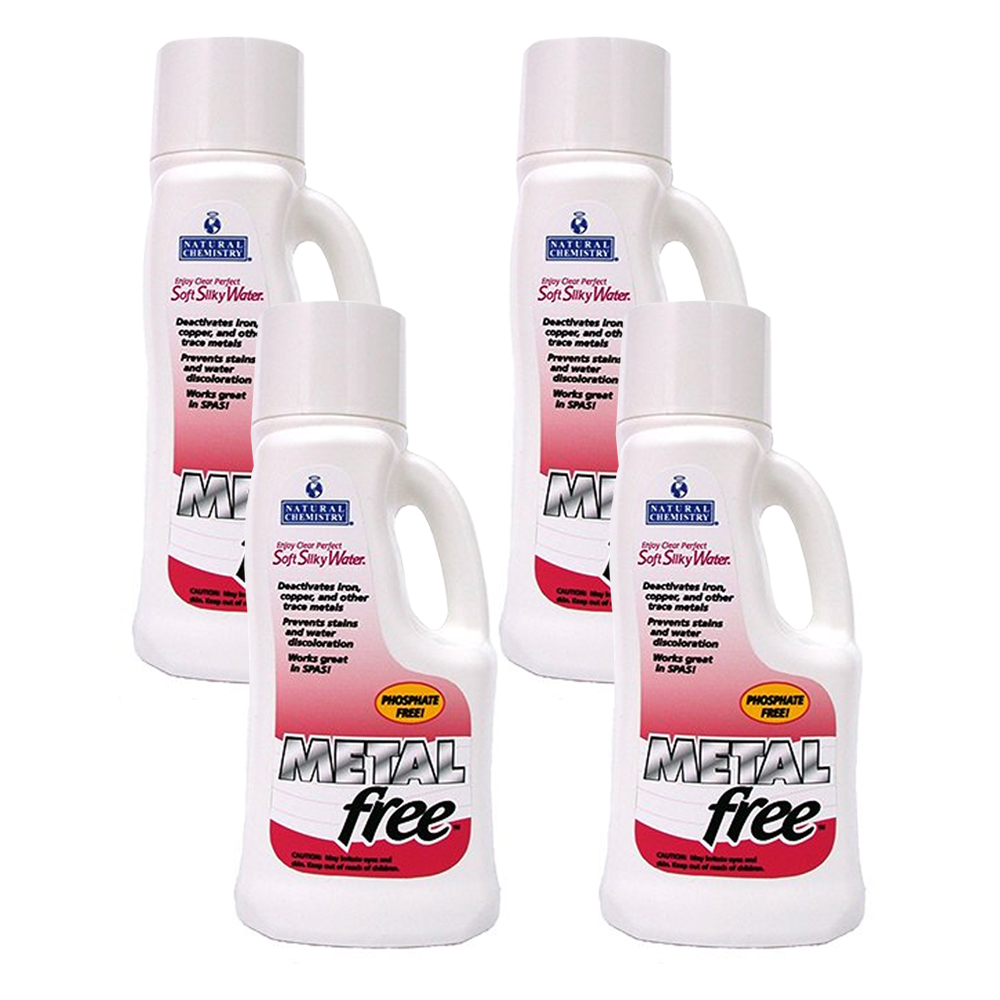Natural Chemistry Metalfree's special formula is ideal for pools that use well water that typically have a high concentration of minerals and iron. Since Metalfree is a citric acid product, it does not raise phosphate levels in pool water, like other stain treatment chemicals which contain phosphoric acids. Metalfree is not affected by pH or temperature and deactivates metals in pool water by using one of the strongest and most effective chelating agents available. It improves water clarity and prevents stained pool surfaces, scaling and discoloration. Dosage: 1 Liter per 20,000 gallons. Pack of 4.