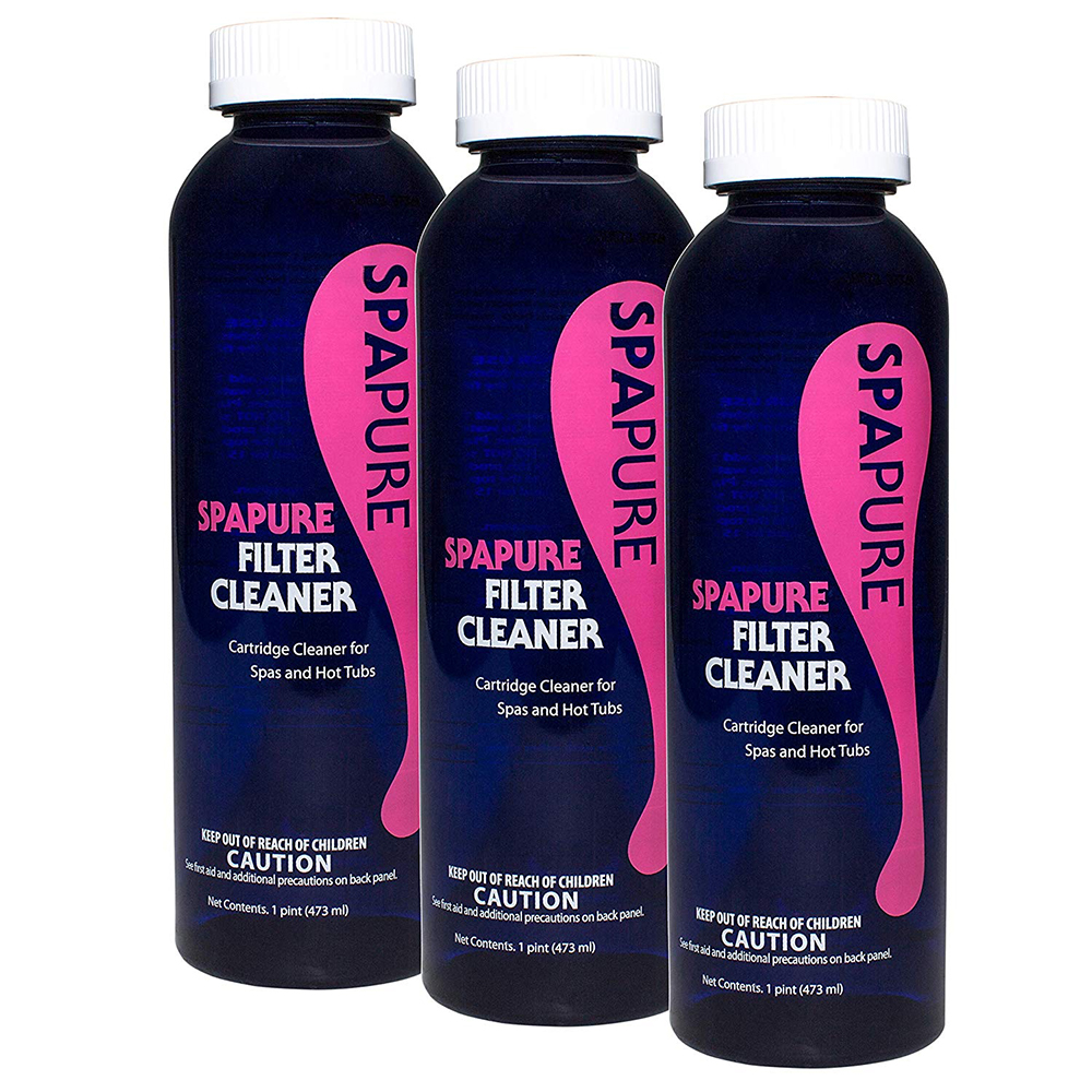 The SpaPure Filter Cleaner is a heavy duty filter cleaner that removes body oils, soapy residues, scale, and grime from filter cartridges. Helps maintain healthy and clear spa water, while improving filtration, and circulation. This product is compatible with chlorine, bromine, biguanide, silver/mineral, and ozone-treated pools and spas.