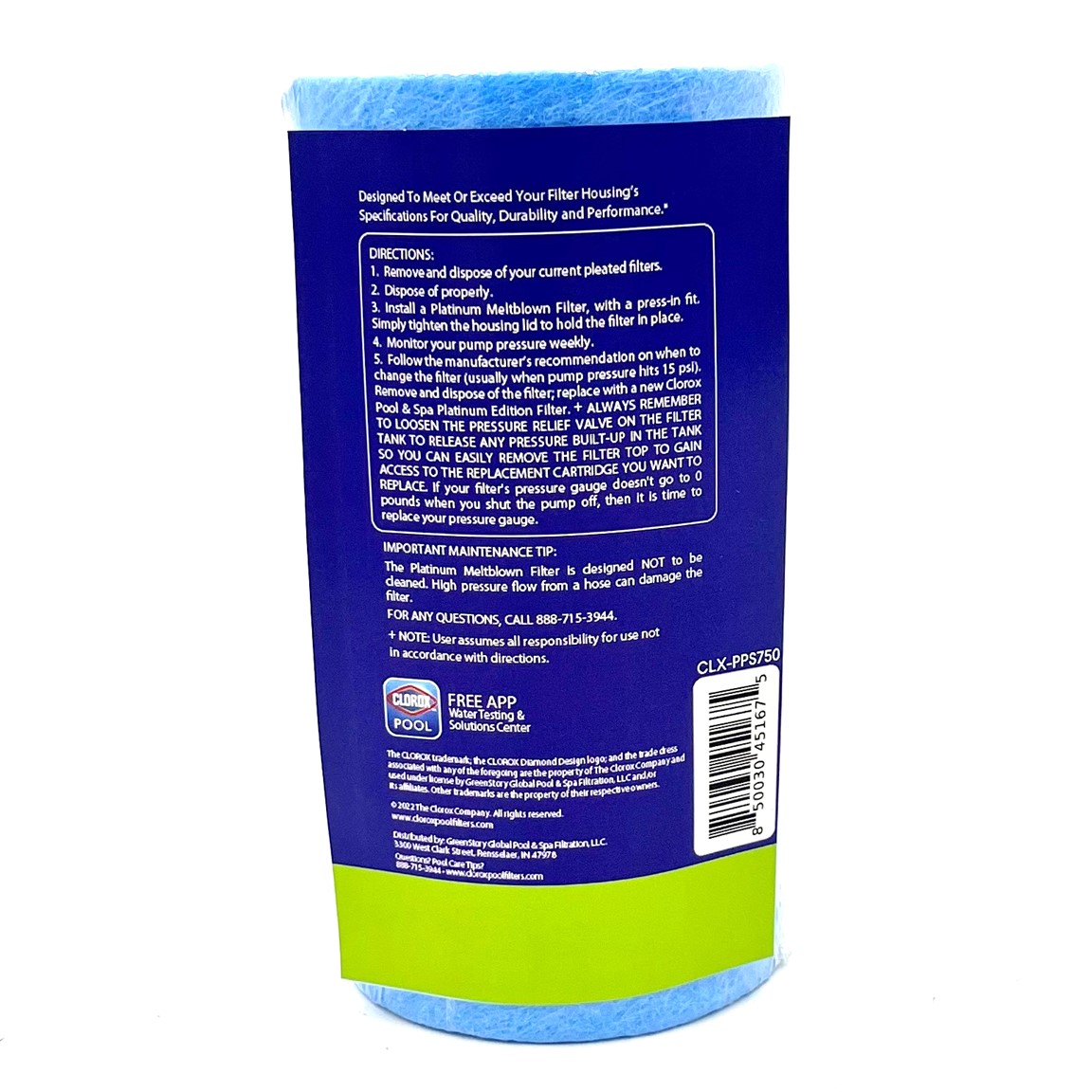 The Clorox™ Pool & Spa Platinum Edition Premium Pool Filters are manufactured to provide the best filtration possible for your pool or spa. With no cleaning necessary, our Made in the USA filter reduces the time you’ll spend on your pool. This groundbreaking filter’s technology is unlike anything found on the market today for pools. Our Platinum Filter removes particulates down to 3-5 microns, leaving your water cleaner and clearer. It comes in 55 sizes to fit the most commonly used filter housings, such as Pentair, Hayward, Jandy, Xstream, ClearWater, ProClean, Predator, and Clean & Clear systems. In addition to reduced maintenance time, the filter enhances return flow, improves suction and surface skimming action, forces less pressure on the filter system, enhances overall circulation, enhances chemical distribution, and conserves water and time (due to no monthly cleaning).